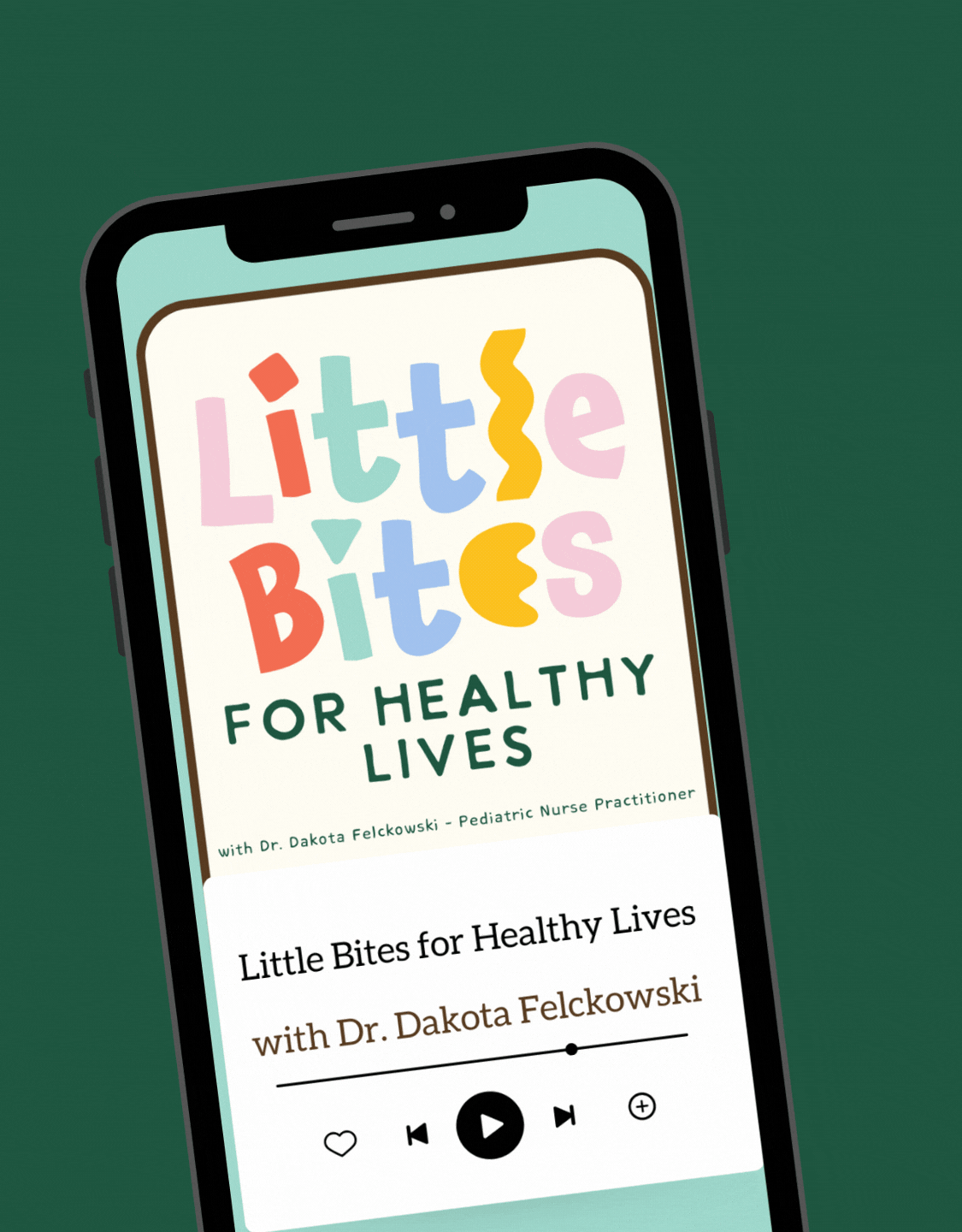 My name is Dr. Dakota! A Pediatric Nurse Practitioner and mom of two busy boys! I am so grateful to be in your ear each week with episodes of the Little Bites for Healthy Lives podcast to help you overcome mealtime challenges one little bite at a time! This podcast is truly such a fun way to help parents and kids get excited about the power of food and how it can create lifelong health and happiness.
